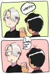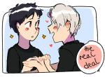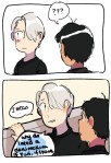 Held up by his bff, Yuuri! (you can’t tell me they didn’t wear these kind of shirts together XD)