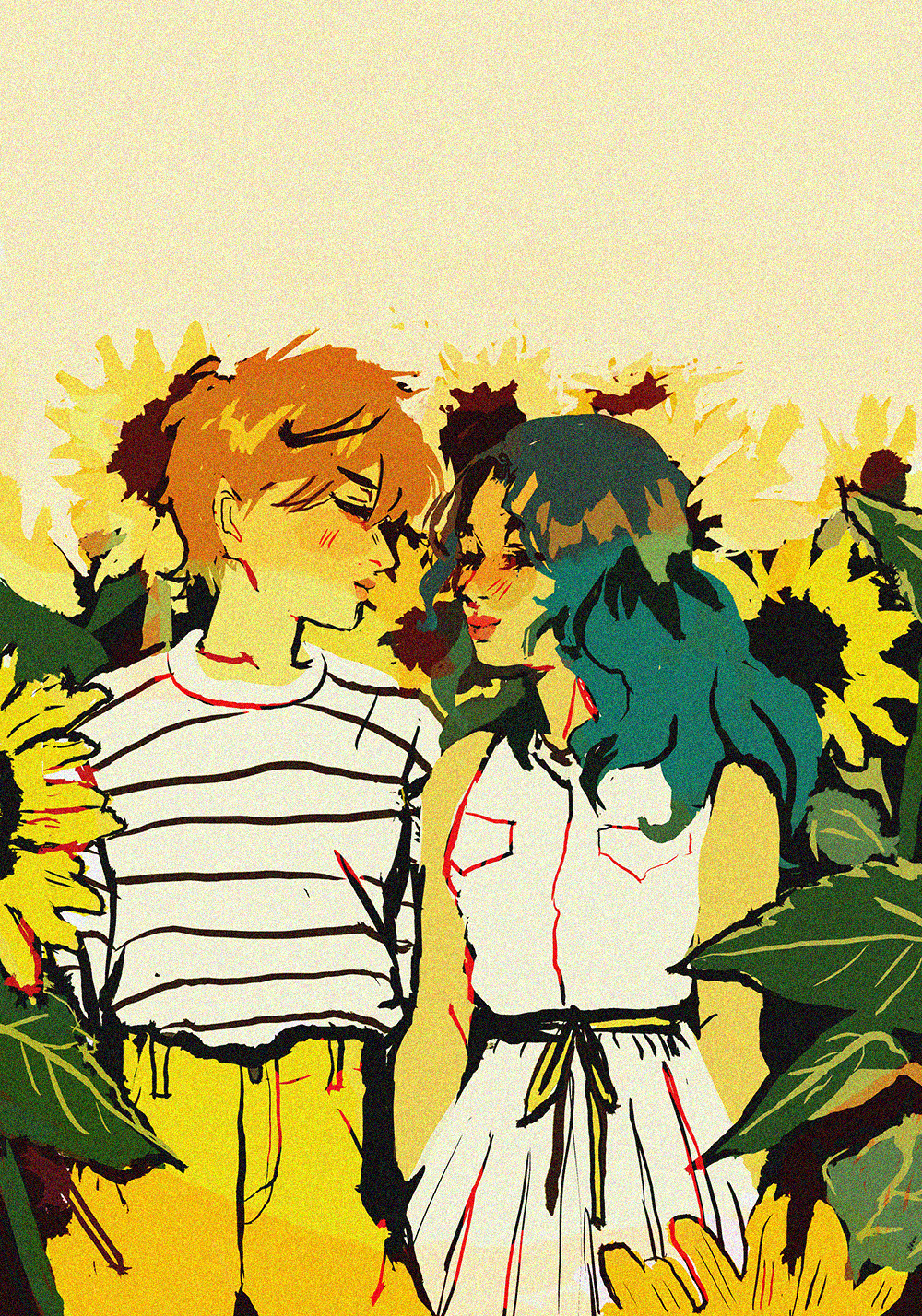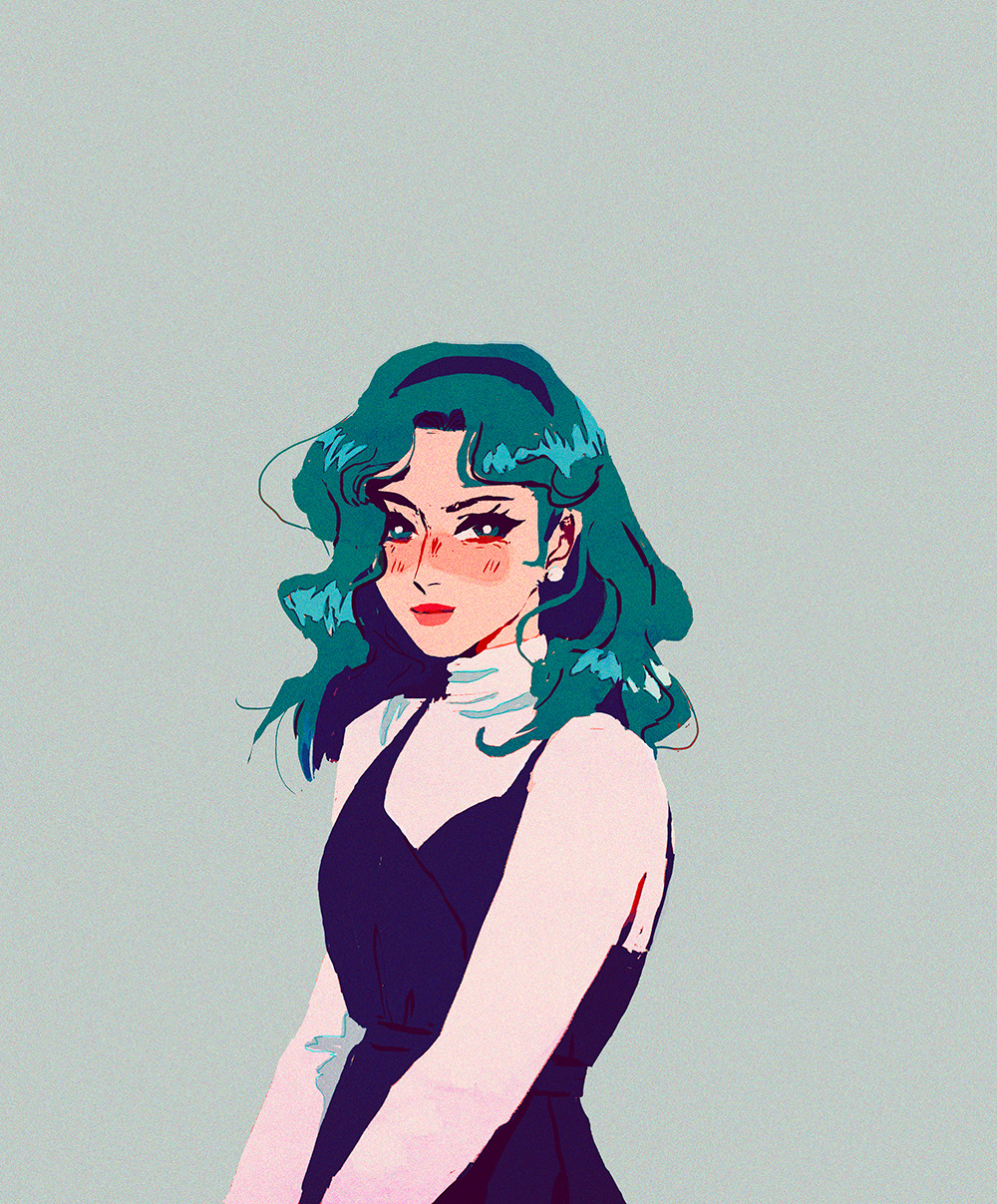 A mix of kuretake brush pen, copic, watercolors and red pencil.