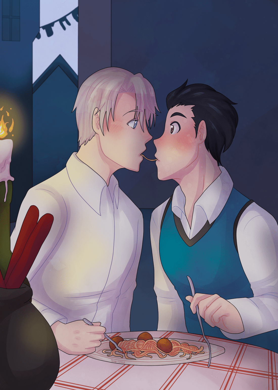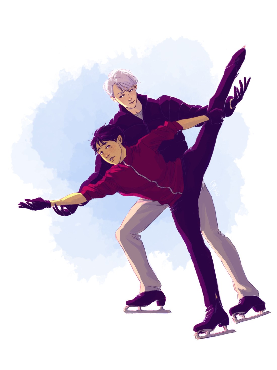 yuuri conveniently forgetting his own jacket during competitions(//・_・//) ofc viktor is more than happy to offer his own (˵¯͒⌄¯͒˵)
